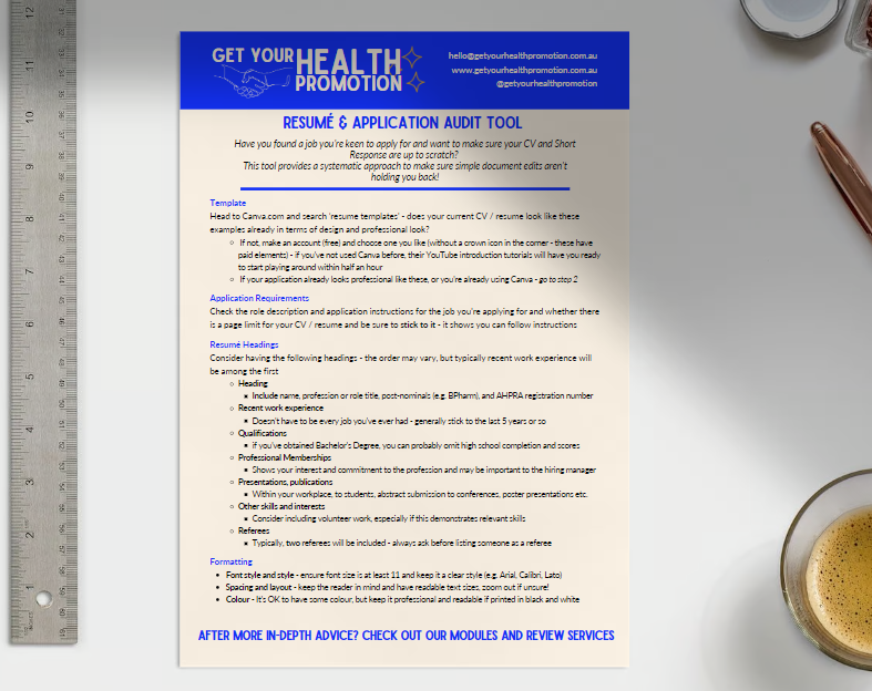 "I was eager to shift from another government department to a mental health role at QLD Health. Seeking guidance, I approached Get Your Health Promotion for interview preparation. Their support in navigating potential questions, structuring responses, and integrating current strategies was invaluable. Thanks to their coaching, I felt confident and well-prepared for the interview—and the best part? I landed the job - permanent too!"
